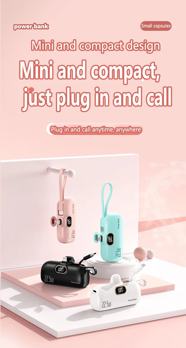 5000mAh mobile phone mini power bank, 22.5W three-output digital display fast charger, lightweight and compact
